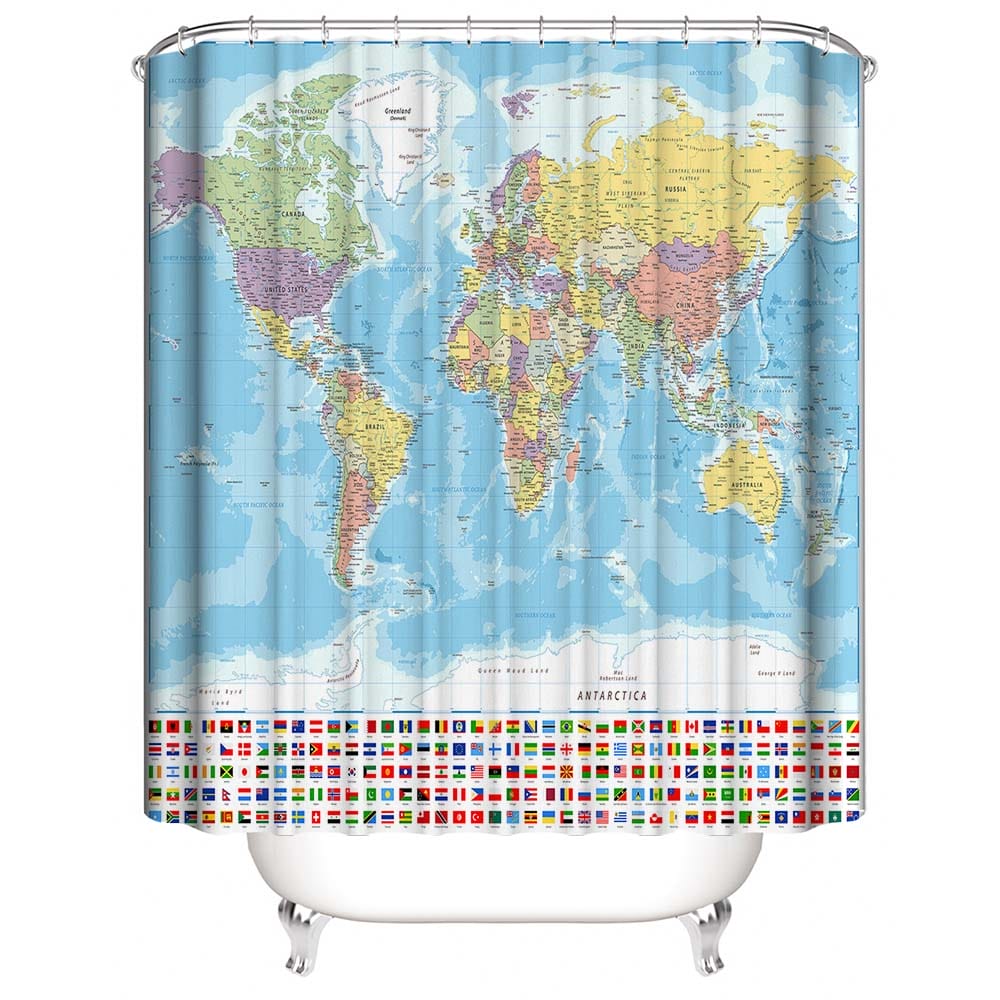 World Map Shower Curtain with National Flag, Geography Educational